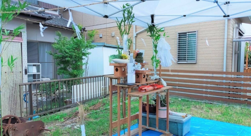 地鎮祭とは、建物建築前に工事の安全を祈願して開催する儀式です。