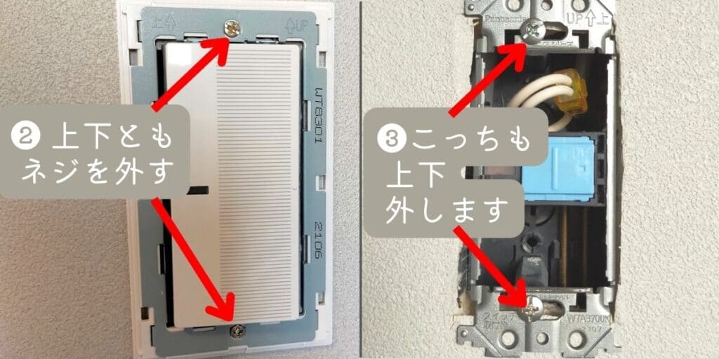 スイッチを外すときはプラスドライバーを使い、上下のネジを緩めていけば大丈夫です。